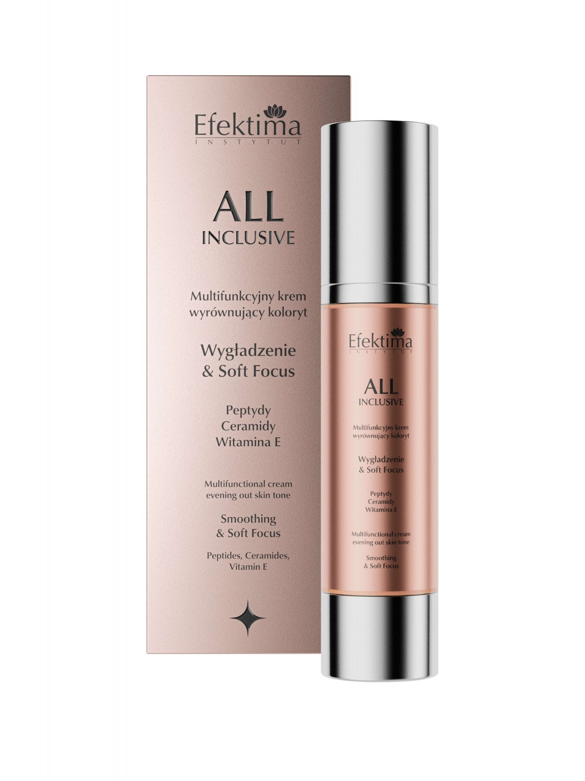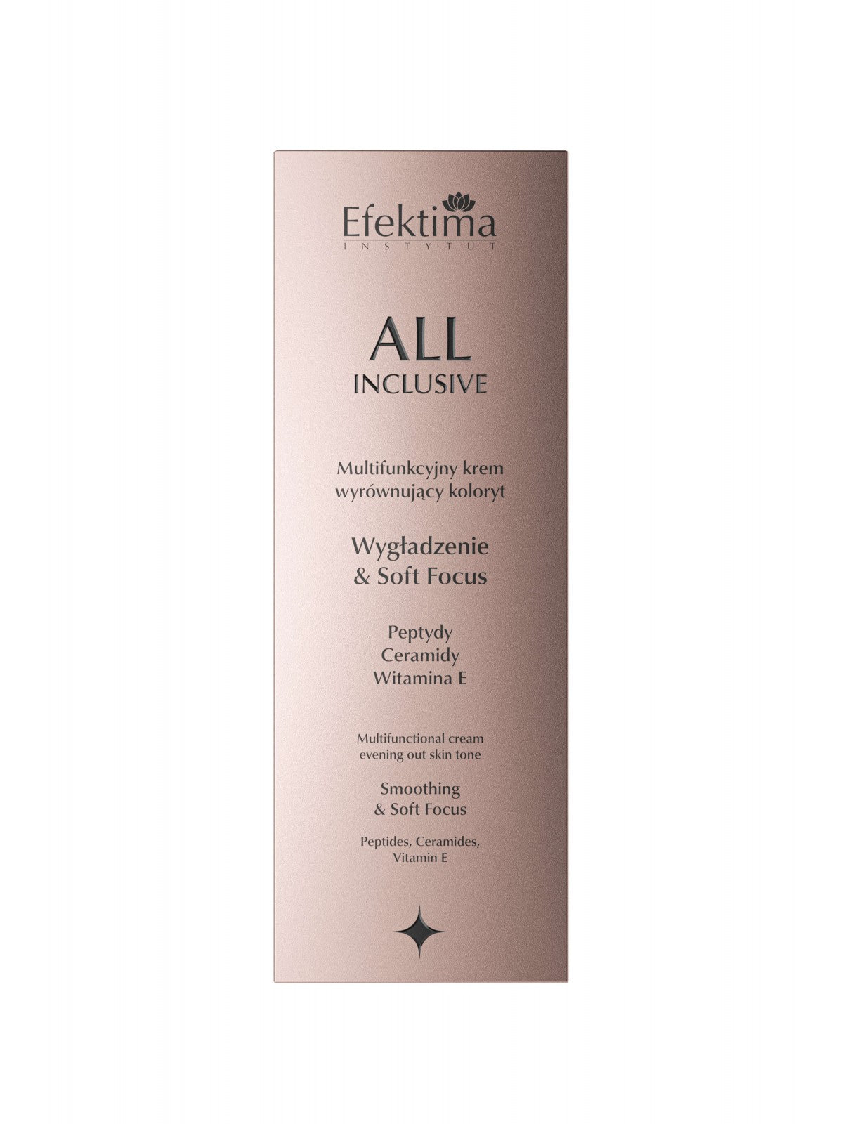 Universalus „Soft Focus All-Inclusive“ kremas sukurtas odos tonui suvienodinti, stangrumui pagerinti ir paviršiaus nelygumams sumažinti. Peptidų kompleksas, ceramidai ir vitaminas E stiprina odos barjerą, drėkina ir suteikia odai švelnumo.